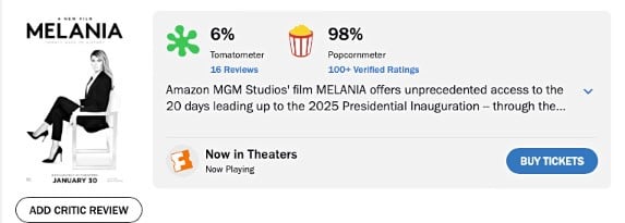 Even if you separate all of the above from the movie itself, the chances that film critics will give “Melania” a fair review are slim to none.